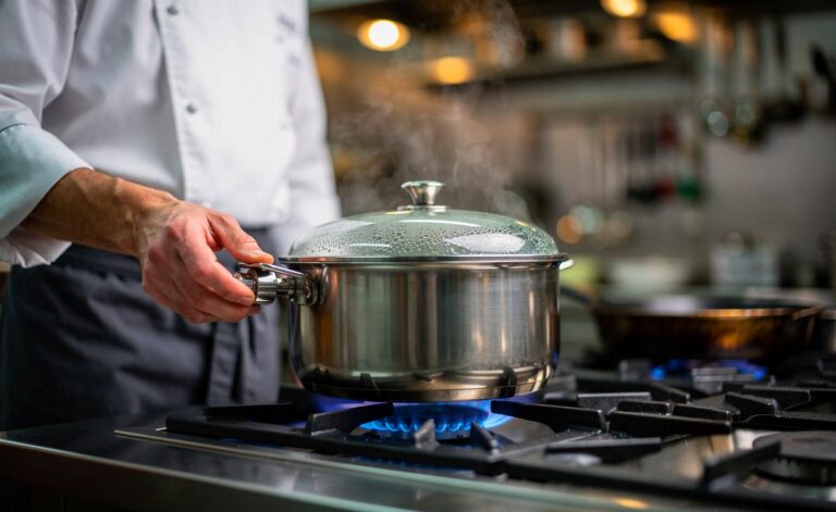 Ein Spitzenkoch zeigt, wie Sie mit präziser Flammenführung, passendem Kochgeschirr, Deckel & Timing am Gasherd schneller kochen, Aromen bewahren und spürbar Energie sparen.