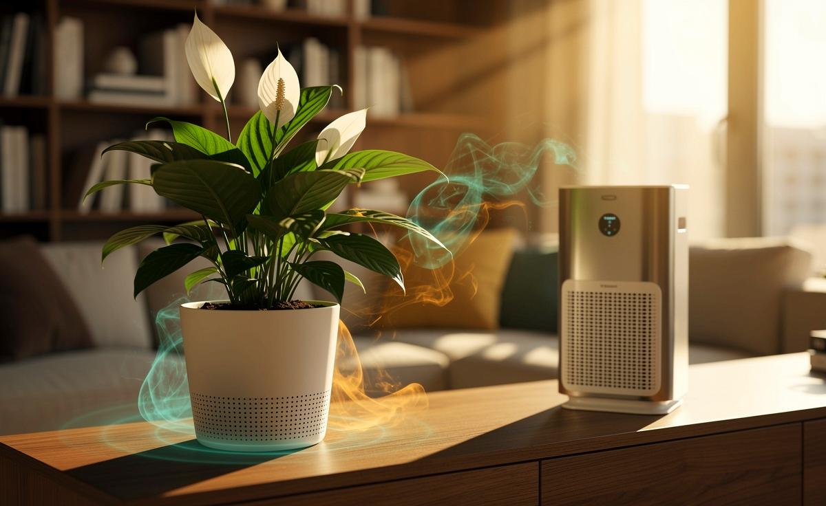 - 🌿 Einblatt (Spathiphyllum) reduziert VOCs messbar und kann unter passenden Bedingungen kleine Luftreiniger bei Gasabbau übertreffen – leise, kontinuierlich, ohne Filterwechsel.