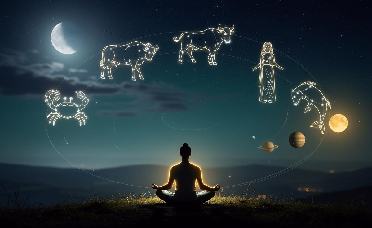 - 🧩 Zeichen-spezifische Praxis: Widder (Atem + Dehnung), Stier (Slow Eating + Body-Scan), Krebs (Herzmeditation + Journaling), Jungfrau (Mikrogewohnheiten + Ergonomie), Fische (Meditation + sanftes Yoga).