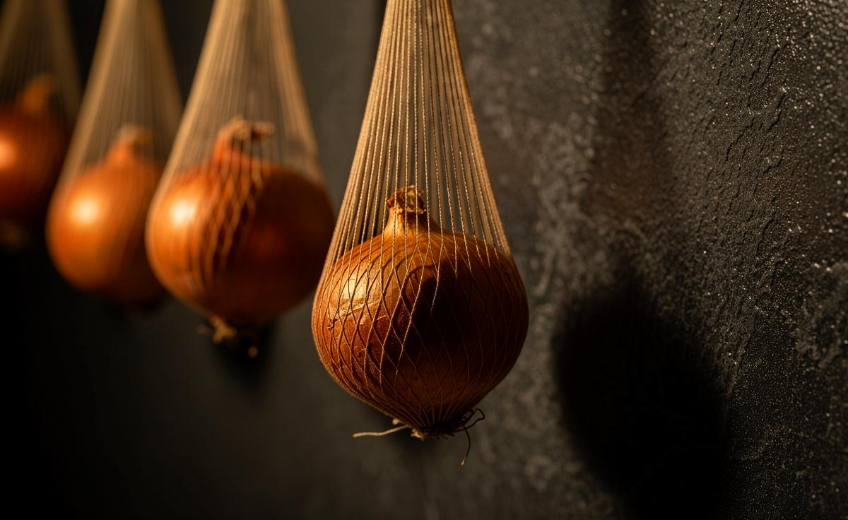 - 🧦 Der Strumpfhosen-Trick: Zwiebeln einzeln in die Beine einer Nylonstrumpfhose geben und zwischen jeder einen Knoten setzen. Aufgehängt bietet dies optimale Luftzirkulation und lange Haltbarkeit.