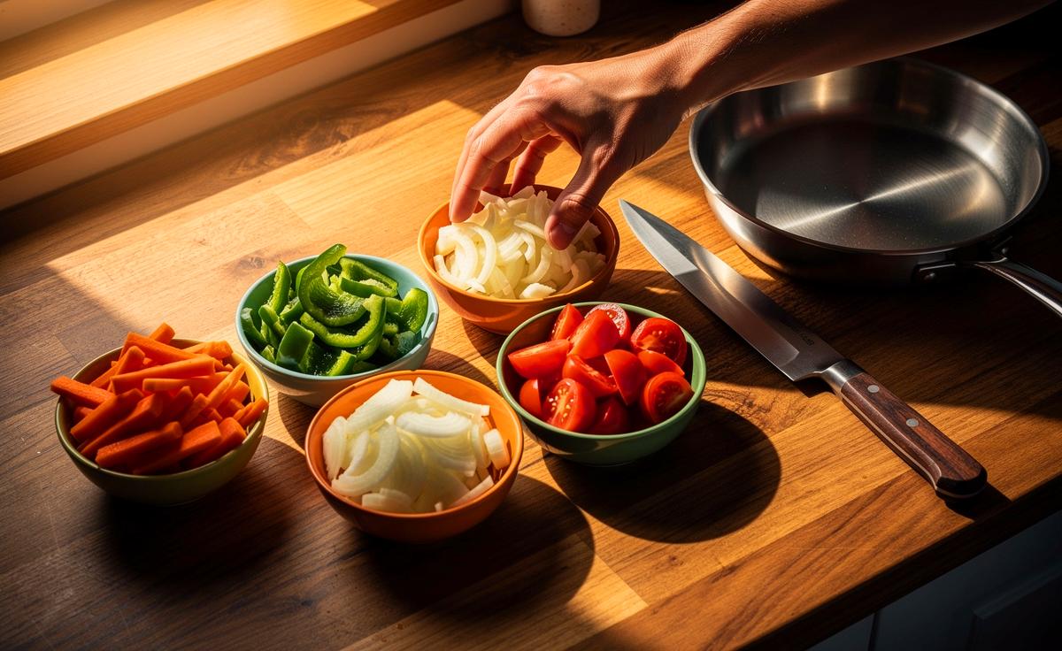 - 🧺 Taktische Zwischenlagerung nutzen: Verwenden Sie Schälchen, um Zutaten, die zusammen gegart werden, zu gruppieren. Dies schafft Übersicht und ermöglicht präzises Timing.